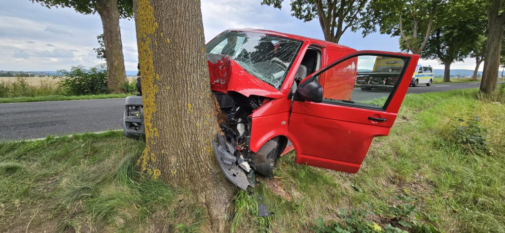 Zwischen Haverlah und Ringelheim ist ein Transporter von der Straße abgekommen und Frontal gegen einen Baum gefahren.