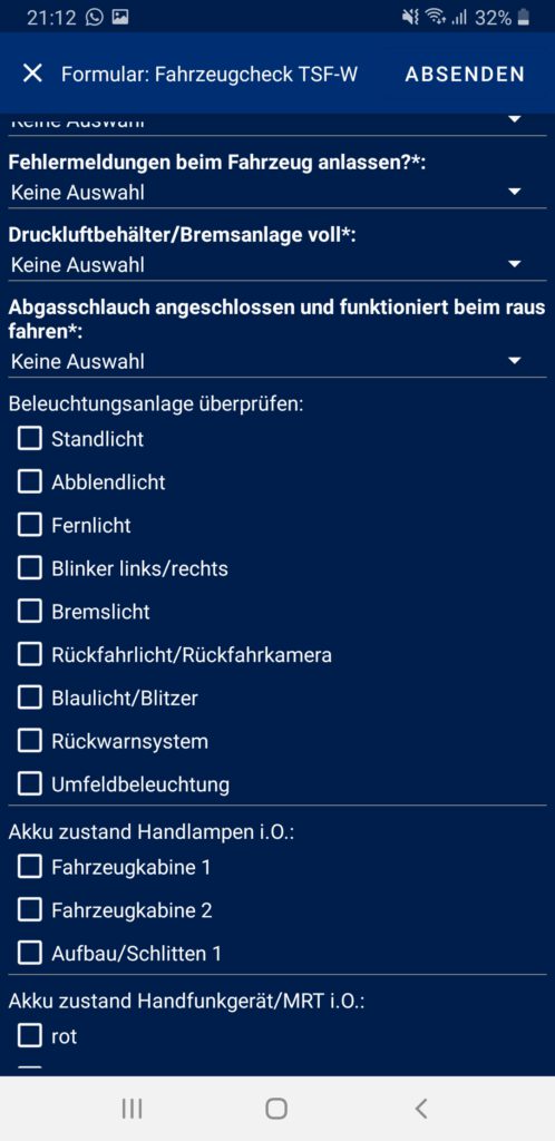 Die Rückmeldungen / Checkliste ist dabei in der Divera-App hinterlegt und das Ergebnis wird an bestimmte Verantwortliche weitergeleitet. Über diese können wir nicht nur alarmiert werden, sondern auch Termine verwalten oder ebensolche digitalen Helferlein nutzen. Eine deutliche Erleichterung gegenüber der bisherigen Kommunikation entweder an einzelne oder in großen Verteilern.